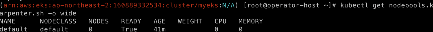 nodePool을 확인합니다. 현재는 기본 nodepool만 있어 weight값이 없습니다.