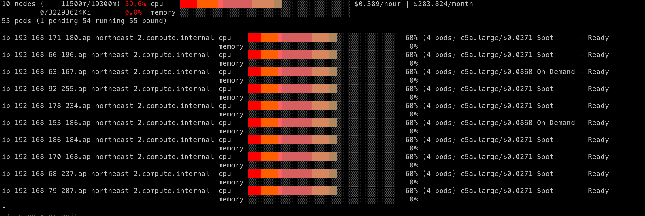 이제 replicas를 10개로 해보자. 역시 spot 8개에, ondemand 2개가 나와야할 것이다.
