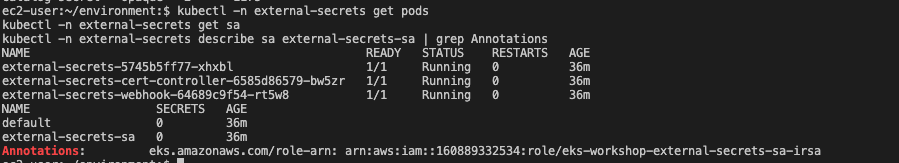 kubectl -n external-secrets describe sa external-secrets-sa | grep Annotations