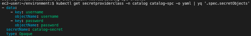 kubectl get secretproviderclass -n catalog catalog-spc -o yaml | yq '.spec.secretObjects'