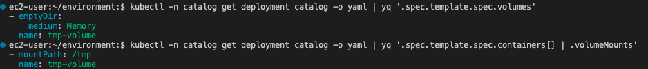 kubectl -n catalog get deployment catalog -o yaml | yq '.spec.template.spec.containers[] | .volumeMounts'