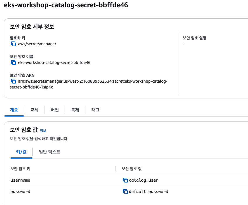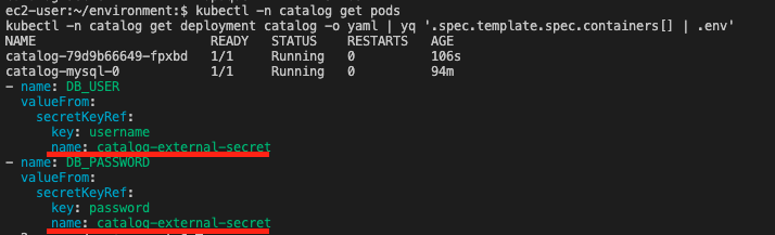 catalog Pod가 새 시크릿 값을 사용하고 있는지 확인해봅시다.