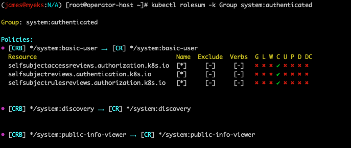kubectl krew install access-matrix rbac-tool rbac-view rolesum whoami