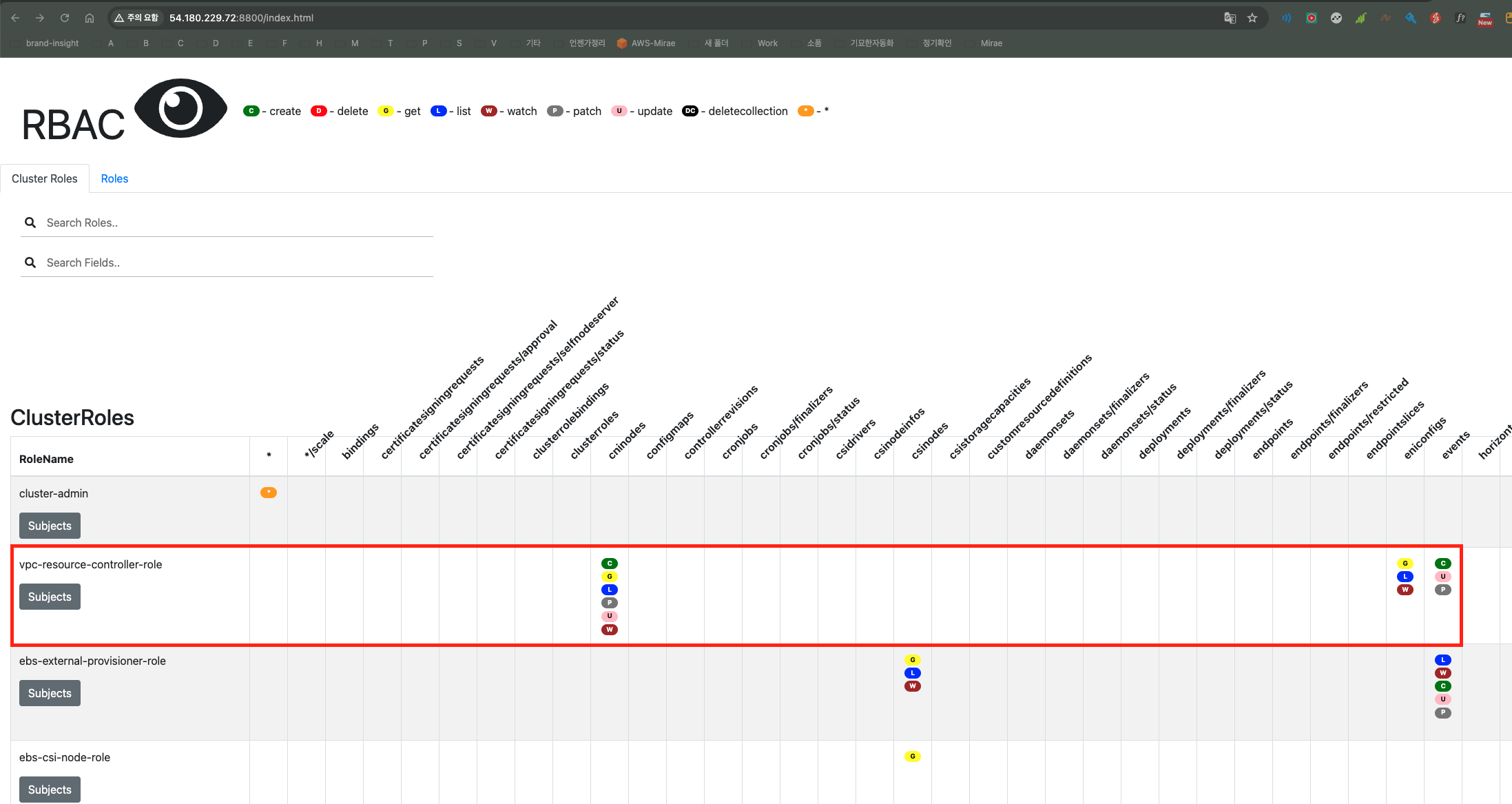rolesum은 깔끔하게 Resource에 대해 verbs를 확인할 수 있는 정보들이 있습니다.