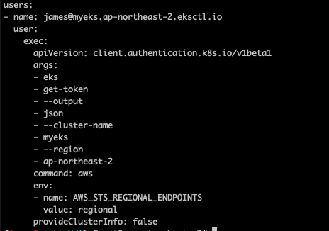 특히 이 때 aws eks get-token을 사용하는데 이는 kube-config정보에서 확인이 가능합니다.