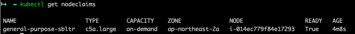 kubectl get nodeclaims