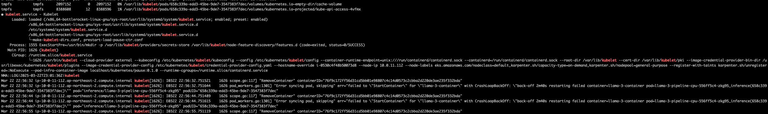 - NodeClass는 기본적으로 80GiB의 EphemeralStorage와 노드당 최대 110개의 pod로 제한합니다.