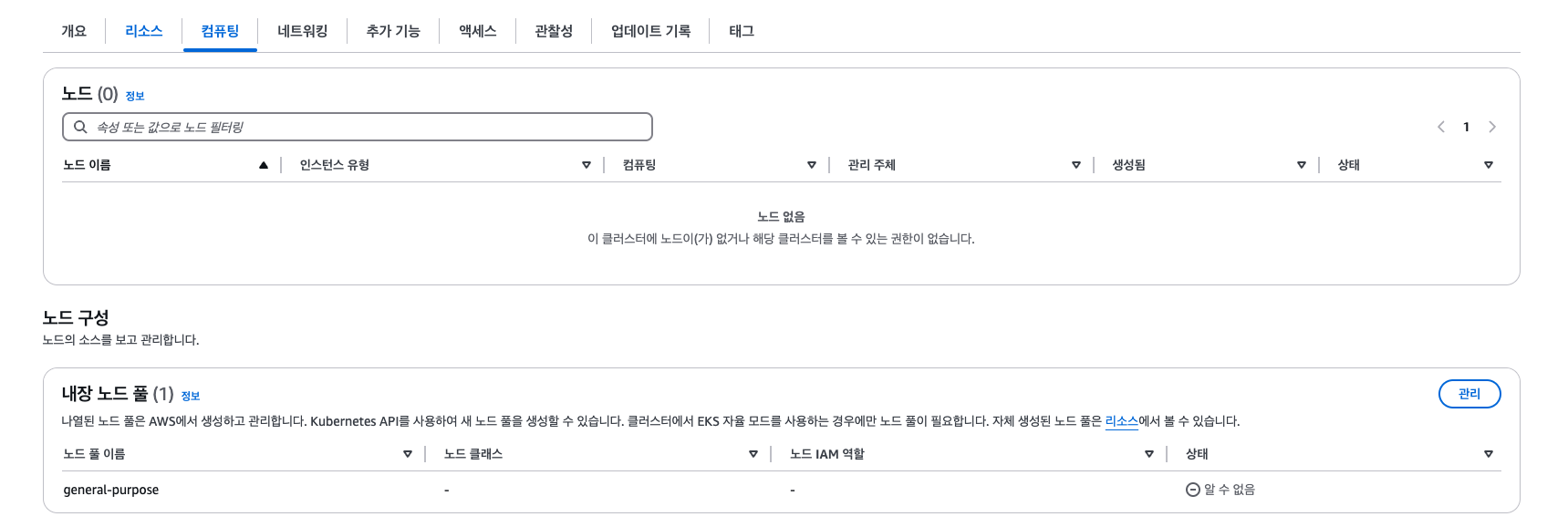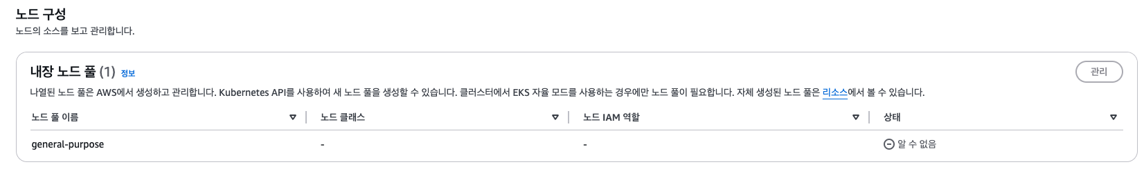 EKS 자율 모드라고하는 곳에서 활성화 표시 및 사용할 노드 IAM을 별도로 잡게됩니다.