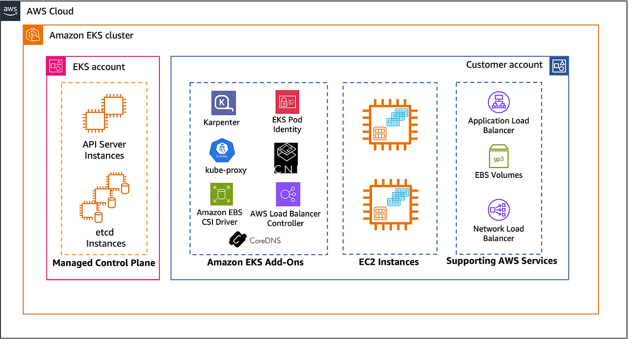 기본적으로 Auto Mode는 Karpenter를 사용합니다. 따라서 노드 자체의 Auto Scaling 기능을 갖추게 됩니다. 뿐만아니라 EKS Auto Mode를 사용하게되면 모든 AWS EKS Addon과 EBS Controller, ELB Controller 등 다양한 컨트롤러들을 AWS에서 관리하게 됩니다.