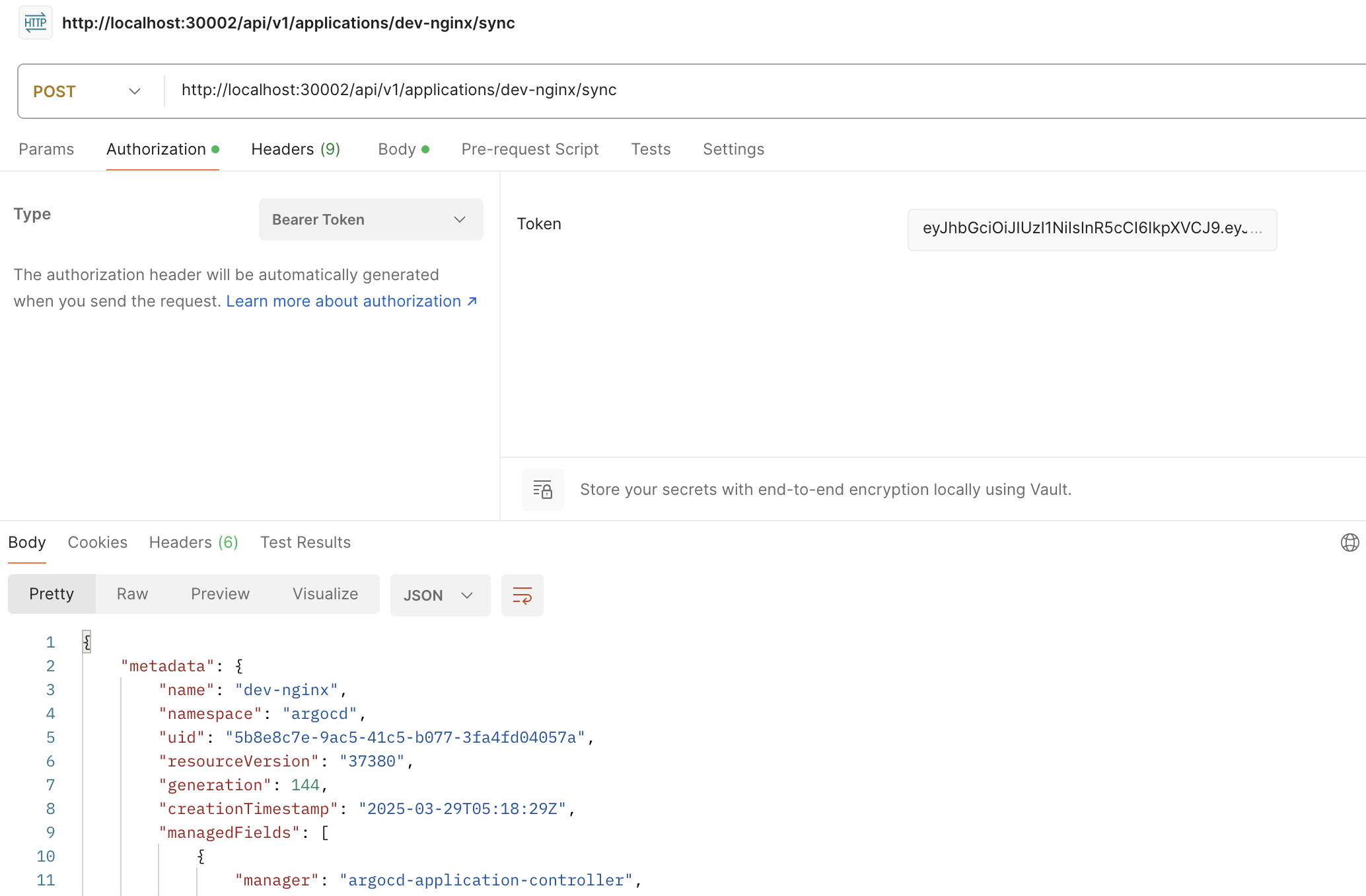 ARGOCDTOKEN="eyJhbGciOiJIUzI1NiIsInR5cCI6IkpXVCJ9.eyJpc3MiOiJhcmdvY2QiLCJzdWIiOiJhZG1pbjphcGlLZXkiLCJuYmYiOjE3NDMyMzc2MDMsImlhdCI6MTc0MzIzNzYwMywianRpIjoiZmQ1YTk4ZDYtYTM5Ny00ODI0LWI5OTUtOGZiYzQ1ZDljNWIxIn0.ix04HMPa9Ucgcynnk-94ZbWkH8RTFl3cf6y5RIHXHik"