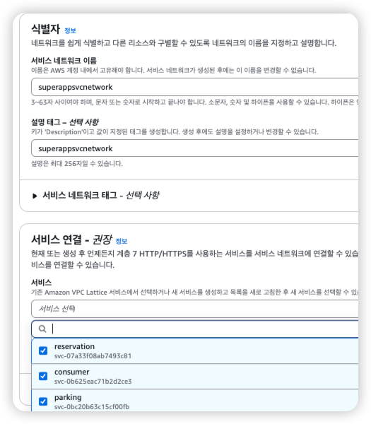 이제 AWs (IngressVPC) 내에서 Reservation, Parking, Consumer 서비스를 연결해보겠습니다.