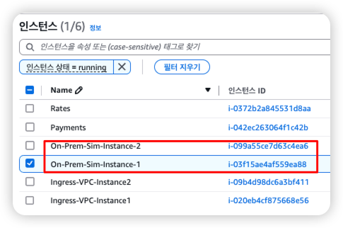 EC2에서 Ingress-VPC-Instance1를 선택해 SSM으로 접속합니다. (동일 내용을 Ingress-VPC-Instance2에서도 해보세요)