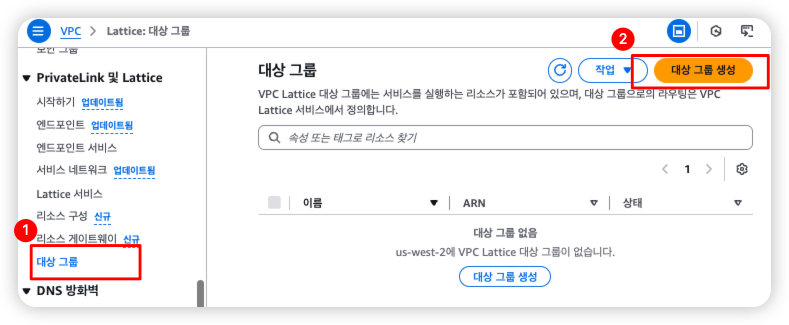 VPC > VPC Lattice > 대상그룹 > [대상 그룹 생성] 버튼을 클릭합니다.