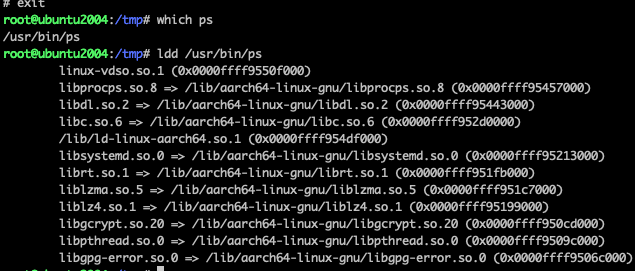cp /lib/aarch64-linux-gnu/{libprocps.so.8,libdl.so.2,libc.so.6,libsystemd.so.0,librt.so.1,liblzma.so.5,liblz4.so.1,libgcrypt.so.20,libpthread.so.0,libgpg-error.so.0} myroot/lib/aarch64-linux-gnu/;