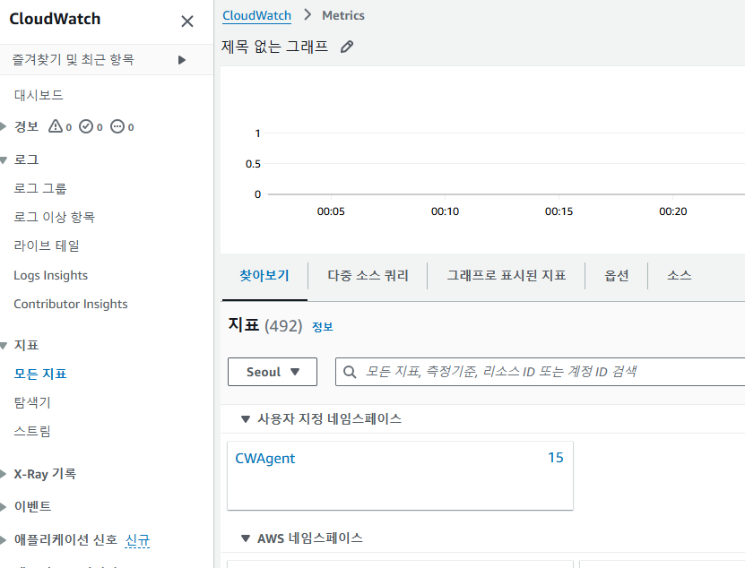 이제 메트릭이 잘 전송되었는지 cloudwatch 대시보드로 이동해 보겠습니다.