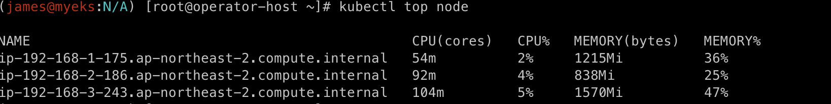 실제로 값은 top 등으로 확인이 가능한데, k9s 등을 활용하시면 바로 그냥 확인도 가능합니다.