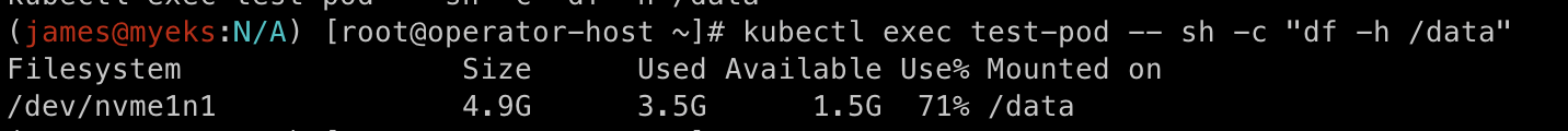 kubectl exec test-pod -- sh -c "dd if=/dev/zero of=/data/dummyfile bs=1M count=3500"