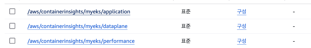 CloudWatchAgentServerPolicy라는 정책을 붙이는 myeks-cloudwatch-agent-role과 함께 IRSA를 만듭니다.